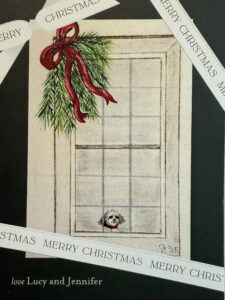 I’ve been doing what I usually do for Christmas, and that includes drawing or painting my Christmas card and making peanut brittle. I miss the days when I used to tape 80 blank cards to my kitchen counters and paint each one separately—always while watching Hallmark Christmas movies—those that always end with a kiss. Now I make one card and send it off to Shutterfly. It’s easier but not as satisfying or personal.